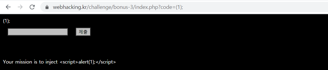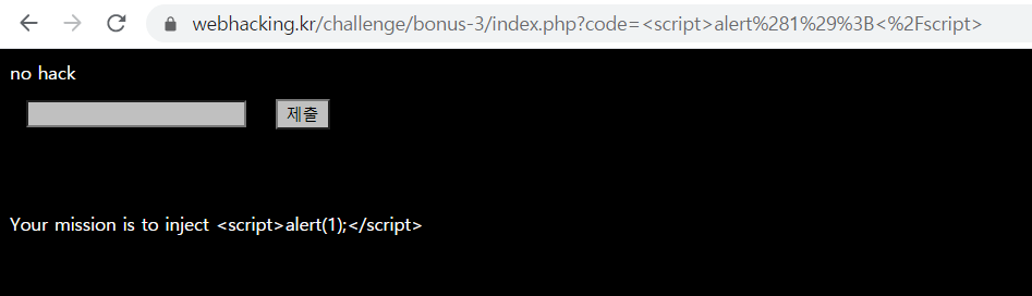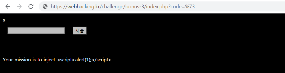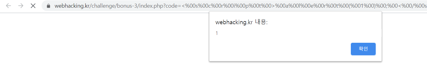 그래서 넣어보니 1이 출력이 되고 <script>alert(1);</script>을 주입할 수 있게 되었습니다!!
