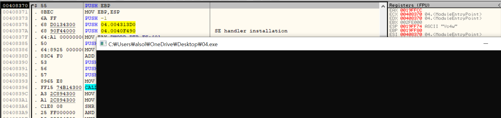 현재 Ollydbg로 디버깅 중이기 때문에