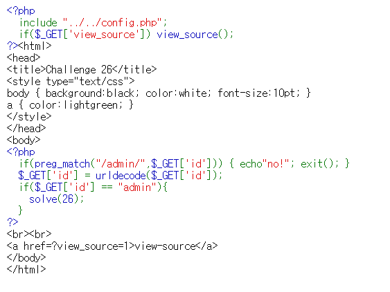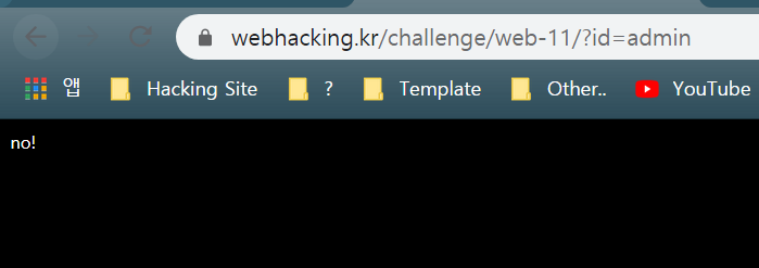 id라는 인자값에 "admin"이면 "no!" 출력하고