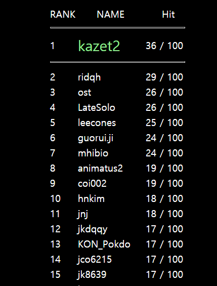 문제로 들어가보니 뜬금없이 랭킹이 나옵니다..