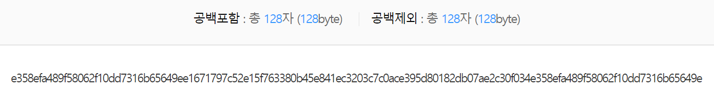 "test"는 총 4자리이니까 128자를 32자씩 나누어 보았습니다!